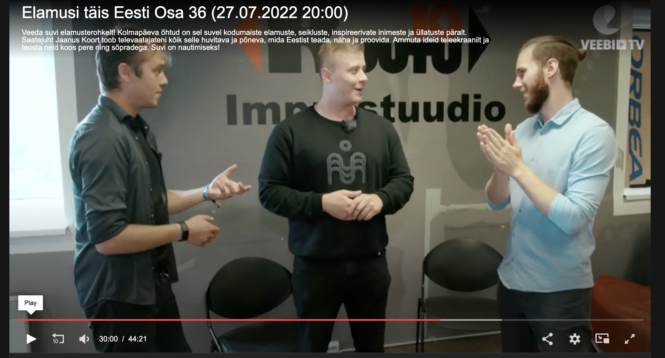 • TV3 “Stuudio”: Saates on improviseerivad näitlejad Veikko Täär, Erki Aule ning Mairi Tikerpalu