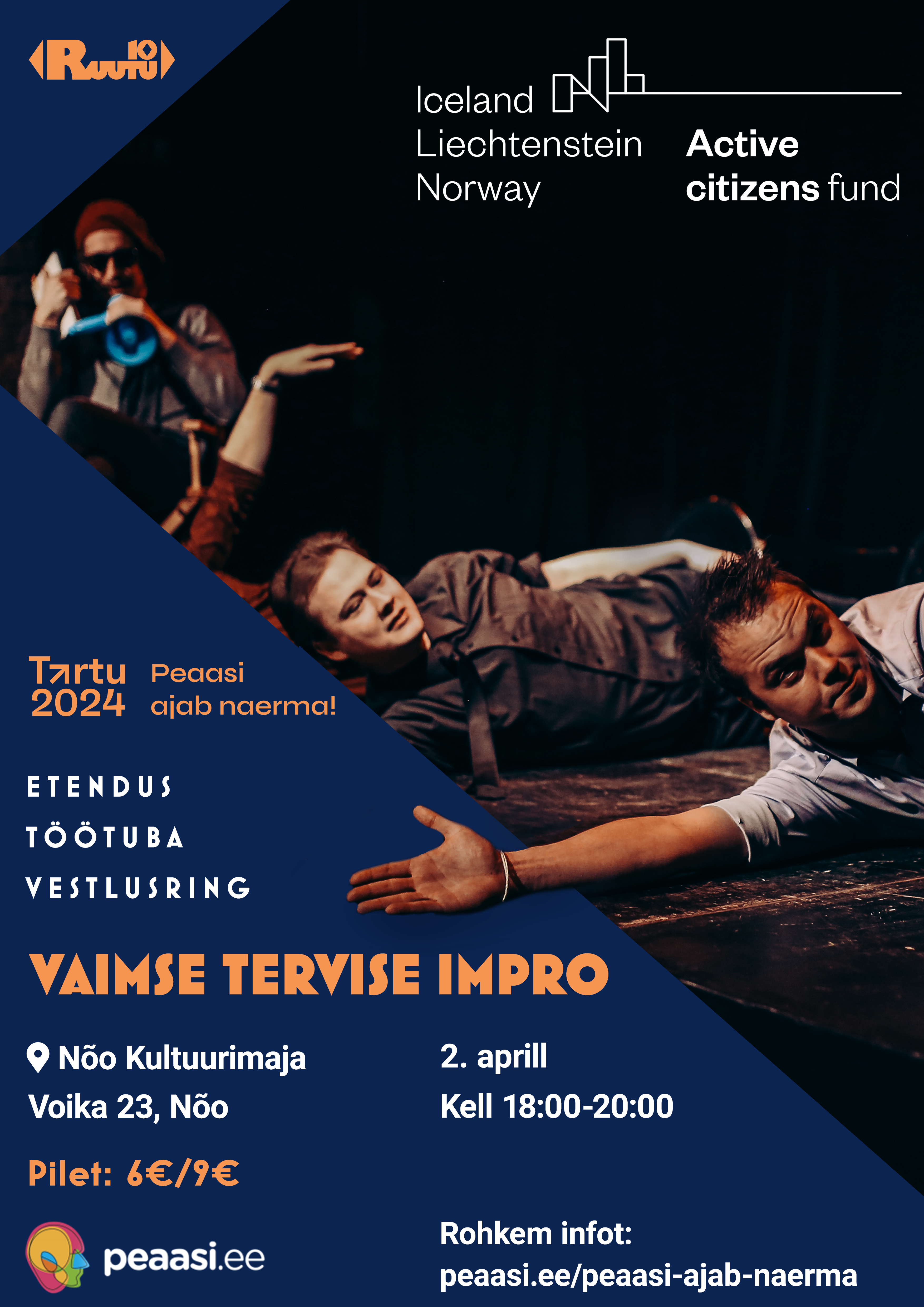 Peaasi.ee, Ruutu10 ja Tartu 2024 eestvedamisel stardib 2. aprillil kell 18 Nõo Kultuurimajas Euroopa kultuuripealinna projekt “Peaasi ajab naerma!”. Sündmusel saadakse osa meeleolukast vaimse tervise improetendusest, aruteluringist ning töötoast. loe edasi
